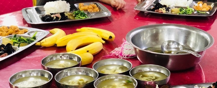 午、晚餐:一大葷一小葷兩素一湯水果