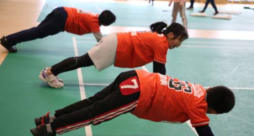 核心、力量(高位平板+、仰臥摸球、推跳箱)