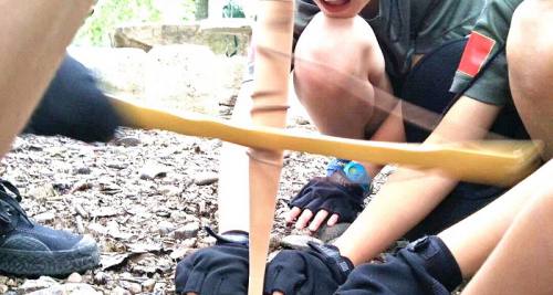 11:30 野外生存技能之野外烹飪:學習各種野外烹飪食物的方法。并利用制作的竹筒生火做竹筒飯。