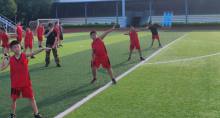 對抗訓練;分析并培養隊員未來發展位置(前、中鋒、后衛)練習,加強基本動作定型,以賽代練;大游園活動(與軍旅夏令營學員聯歡)