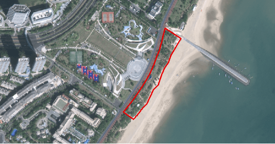 地址:位于思明區環島南路段玩月坡綠地,用地面積約為6000㎡,土地利用現狀為公園綠地和沙灘。 (如下圖所示)