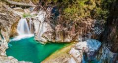 親水谷以幽峽、碧潭、奇石著稱,景區內峭壁聳立,幽靜深遠,鳥鳴山澗,特別是春夏,野花開滿山谷,蝴蝶翩翩,被譽為“情人谷”。這里保存了最典型的壺穴地貌,成為南嶺的一大奇景。