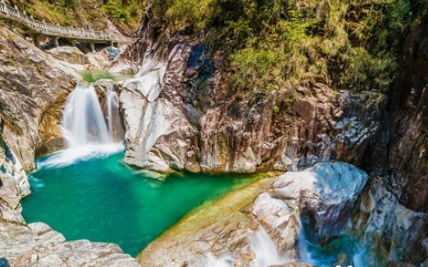 南嶺國家森林公園四季皆宜游玩,公園分為小黃山、瀑布群、親水谷、石坑崆四大景區。這里春季杜鵑含笑,鳥鳴山澗;夏季濃蔭蔽日,清溪長流;秋季漫山遍野,紅葉斑斕;冬季霧凇冰凌,恍若北國風光。這里的負離子含量是廣東之最,特別是瀑布群景區,是一個天然的氧吧。