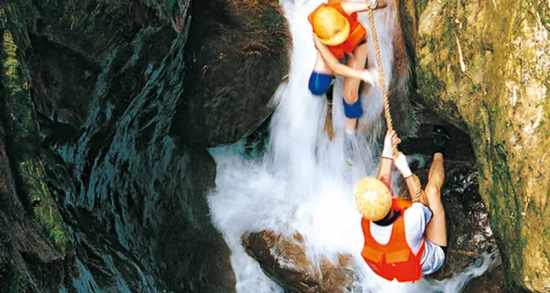 人體漂流:位于峽谷下段,全長約2.3公里。即指不用船的“裸身”漂流,攀巖、跳水、游泳等環節均可在溪降過程中體驗。提供頭盔、救生衣、護具、涉水鞋、防水包全套溪降裝備。
