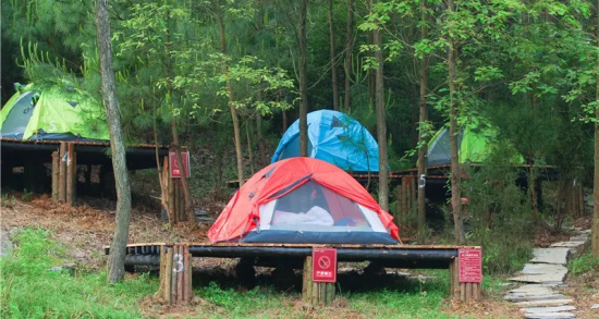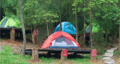 露營營地位于金刀峽景區北門游客中心,面積約平米,可供200人搭建帳篷。營地用電用水設備齊全,配備洗手間、淋浴間等服務設施。
