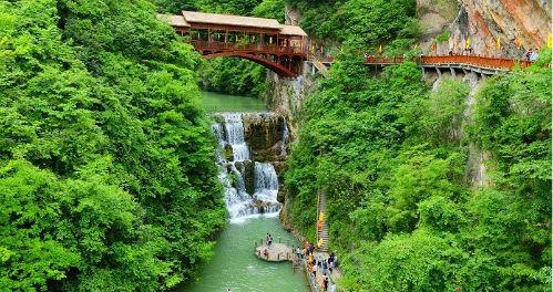 在7.5公里的峽谷中有厲王峰、武王峰、文王峰、卞和峰等峰峰呼應,還有漱玉瀑、玉女瀑、玉龍瀑、落玉瀑等瀑瀑相連。景區中有奇、險、雄、幽的峽谷、山寨、溶洞景觀;又有麻坑、橫沖近10萬畝高山森林、草場、草甸、箭竹、奇峰、奇石等自然奇觀;景區中有1300余種動植物資源,其中國家重點保護珍稀花卉植物80余種,橫沖原生牡丹自然保護區是中國原生牡丹的發源地,是天然的”植物基因寶庫”。
