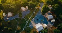 野鴨子營地位于黃埭鎮馮夢龍村內。站在良蕩港濕地公園的瞭望塔上朝北望去,一處五顏六色的彩虹橋首先映入眼簾,沒錯,這就是野鴨子營地的南入口。從這里進入,即刻奔赴一場與大自然的約會,等日升日落,看燦爛星河。一萬平方米自由草坪、集裝箱咖啡廳、熱帶雨林咖啡區、一比一還原的霍比特小屋、拍照超級“出片”的2000平方米水杉林2600平方米的釜火平臺..男女老少,都能在這個營地找到適合自己的娛樂方式。