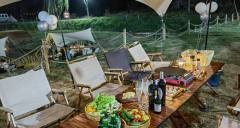 提供天幕、蝴蝶椅、蛋卷桌、露營燈具等裝備,也提供烤肉、新鮮蔬果、網紅飲品,美食應有盡有