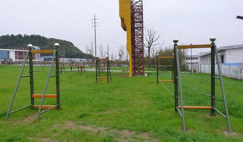 基地內有專業的高空設施,可以進行高空抓杠、合作天梯等項目,蘇州陽山拓展訓練基地內有專業的真人cs基地一處,可進行真人cs比賽。
