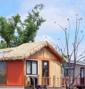 酒店為度假酒店,一期是以風格獨特的木屋結構為主的獨棟客房,屋頂為玻璃結構,可以觀看星星。錯落有致,與自然融為一體,是上海灘最為靚麗的木屋群;二期以酒店式客房為主,簡約風格,舒適寬敞。