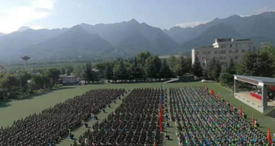 建于周至縣集賢鎮集賢產業園, 距離西安60公里。 毗鄰著名風景名勝區樓觀臺、財神廟, 與國家秦嶺植物園一路之隔, 周圍環境青山綠水。 學校占地270畝, 總建筑面積達到50000平方米, 一次可接納5000人同時住訓