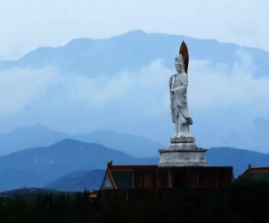 佛教文化,令人神往,高達五十米的漢白玉觀音塑像,玉立云天,背依岐山,面觀湖海,足踏蓮花,手托凈瓶,揚播甘露,向塵世傳播著海天佛國的天籟福音