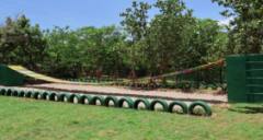 基地內設置綜合訓練場、陸地拓展場、野戰訓練場三大板塊、大型基建固定式項目九項,移動式組織類拓展項目三十余項,包含競速卡丁車、攀巖場、射箭場、彩虹橋、叢林穿越、真人野戰CS、軍事裝備展覽各類團建拓展設備器材