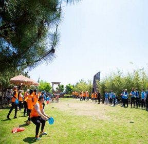 景觀經過精心營造。 面朝大海,鳥鳴啁啾,茶果飄香。園區內, 建有鄉居旅舍、云過茶社、葡萄采摘園、海 洋漁業主題公園、篝火晚會、露營基地,拓 展培訓等主題,集吃、住、品茶、采摘、觀 光、康體健身、休閑度假為一體