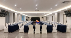 酒店地址位置優越,距離G15沈海高速樂平出口僅5公里,距三水萬達廣場僅15公里,離花都區16公里,驅車廣州新白云國際機場35公里,交通極其便利。廣商酒店秉承家的經營理念,為賓客提供簡約清幽的環境,優雅舒適的裝修風格,45m2寬敞客房空間,配套齊全的家電設備。房間面積為80m2,安全的智能防控,且可免費使用無線網絡,超大景觀陽臺,讓賓客在喧囂的城市里令您舒適身心,暢享深度放松。 酒店擁有多間不同規格,設備齊全且功能完善的多功能會議廳,配備先進的投影儀,LED屏,臺式電腦等視聽設備。其中最大的會議中心占地800m2,可同時容納600余人,是舉辦商務會議,學術交流、研修培訓的佳選。同時酒店配有專人銷售服務隊伍,優質個性化的五星級服務,設備齊全的商務配套,為您帶來無限商機。 中餐廳:餐廳主打嶺南風味粵菜,擁有可容納200人同時就餐的無柱式多功能宴會廳和獨立的中餐包房,為商務宴客,親朋聚會,包房宴席等提供私密高雅的空間,打造出完美的用餐體驗。