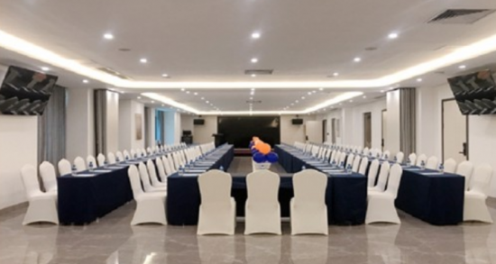 廣州工商學院國際學術交流中心(廣東省廣商酒店管理有限公司)是由廣州工商學院根據自身發展精心設計的建筑標準為四星級酒店。酒店位于佛山市三水區樂平鎮三花公路廣州工商學院三水校區內,酒店擁有時尚典雅的各式客房534間,會議室及宴會廳共15間,中西餐廳,素質拓展基地,室外大型游泳池(季節開放),籃球場,足球場,健身房,圖書館等配套設施和服務等。
