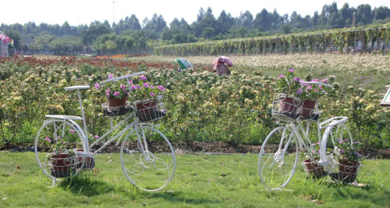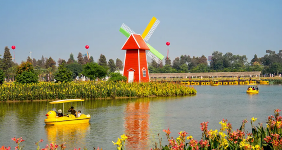 園區內種植有過百種花卉,有太陽花、醉蝶花、百合花、郁金香、金魚草等多種國內外名花。園內還有華南最大的觀賞性玻璃溫室,里面種植10種不同顏色太陽花,可供游客一年四季入園觀賞。園區內還種植多種不同季節開花的名貴樹木,如:大腹木棉、黃花風鈴、宮粉紫荊等等……除了讓人心醉的觀花,可以坐上小火車,也可以踩用單人、雙人、三人的自行車繞園一周穿梭花海之間觀賞各式美景。游客可以在天鵝湖上體驗小黃鴨、竹排等腳踏娛樂項目,以及兒童種植科普教育基地。