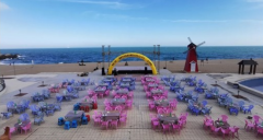 可承接團建活動、婚慶活動、中小型賽事活動等團隊組建活動。中餐廳面積100余平方米,可開28席,適合舉辦各類中式宴會、婚禮喜宴、團餐、自助餐,并擁有2間火鍋包房,海鮮大餐、潮粵名肴、應有盡有。會所二層歌舞廳,為游客們在悠閑的環境中消遣舒懷或輕歌曼舞,放飛心情一展風采!也可以在室外舞臺K歌,在戶外海邊載歌載舞,歡聚一堂。