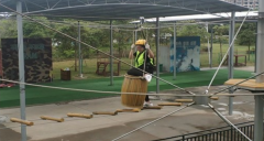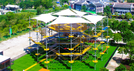 鳳凰塔占地1500平米,塔高18米,參照德國標準設計建設,耗時近一年。結合中國人的需求特點,鳳凰塔在主體上加蓋了遮陽雨棚,為喜愛戶外拓展的中國愛好者加一個溫馨的遮擋。全塔分三層共90個步道,難度分初中高三級,力求與所有熱愛運動喜歡挑戰的朋友,都有機會親密接觸。安裝于塔身三層的蹦極設備,選用美國進口緩降器,體驗者可淺嘗蹦極樂趣,瞬間刺激帶給你永恒的記憶。