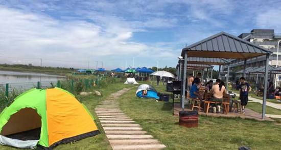 基地有28個湖景燒烤亭,30多個燒烤爐,每個亭子最多可以容納15人左右,4個小時用餐時間,吃喝痛快!