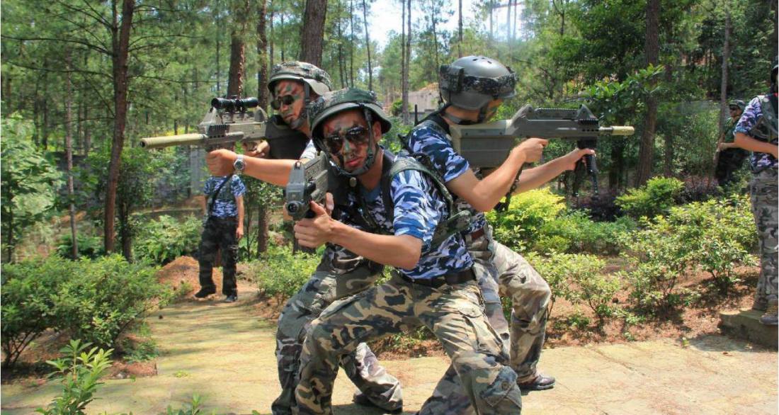 真人CS是一種軍事模擬類真人戶外競技運動。使用模擬類游戲戰術發射器(BB彈、水彈、彩彈、激光等各類對抗發射器器械)身著戰術裝備以及各種款式的軍裝、護具,進行的模擬軍隊作戰訓練的一種游戲,可在游戲中體驗戰爭,通過對抗游戲讓學員感受快樂,讓學員能體驗真實戰場環境下才能激發出來的勇氣、信念、謀略、戰友情。