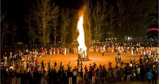 篝火晚會是草原人民一種傳統的歡慶形式,相傳在遠古時代,人們學會了鉆木取火之后,發現火不僅可以烤熟食物,還可以驅嚇野獸,保護自己的生命安全,于是,對火產生了最初的崇敬之情。后來,人們外出打獵滿載而歸,互相慶祝獲得了豐厚的戰利品,傍晚,在用火烤熟食物的過程中,便互相拉手圍著火堆跳舞以表達自己喜悅愉快的心情,這種歡慶的形式一直延續到今天,就形成了篝火晚會。