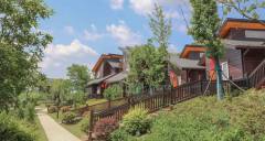 南京半城·大山房車度假區拓展基地總占地面積112畝,度假區環境自然生態、質樸秀美。以國際慢城“蝸牛”為元素的整體布局,與自然景色融為一體,依山傍水、鳥語花香、樹木蔥蘢。