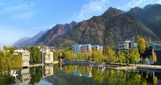 ?  西安高科拓展訓練基地,高科度假大酒店位于西安城南20公里處,在郁郁蔥蔥的秦嶺腳下,占地約三百余畝,酒店由160間風景客房、10棟獨立豪華別墅構成。