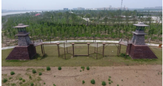 1.突破封鎖線。歷史背景:1934 年 10 月上旬,中央紅軍主力離開江西瑞金,經浴血奮戰,相繼突破國民黨軍第一、二、三、四道封鎖線,于 12 月 1 日渡過湘江。項目設置:突破封鎖、拱橋、障礙墻、鉆網路、翻山越嶺。項目占地:總長 130m,寬 8m。