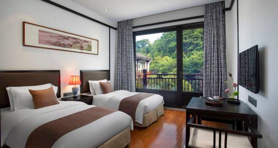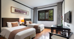 南山竹海客棧擁有各類特色客房167間,給你的旅途提供完美的休憩享受。擁有各類景觀標間、大床141間,家庭套房24間,豪華套房2間。客房內的扎染、木雕、青花等的復古陳設的巧妙搭配與窗外的古街、竹濤相得益彰,配以居家式的貼心服務,打造出南山竹海客棧獨有的清幽、雅致的客房服務氛圍。