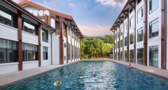不只是一家酒店 沁谷·南山酒店位于江蘇省溧陽市天目湖、南山竹海,兩個五A級度假景區網紅一號路公路旁,群山環抱。酒店環境優雅而別致,小 橋流水,瓜果飄香,茶香四溢。整體配制**白茶、綠茶、時令鮮果、 禽類、魚類的養植、加工及銷售。度假風格的設計與豐富的水資源相 協調呼應,讓你能快速融入這山水之間